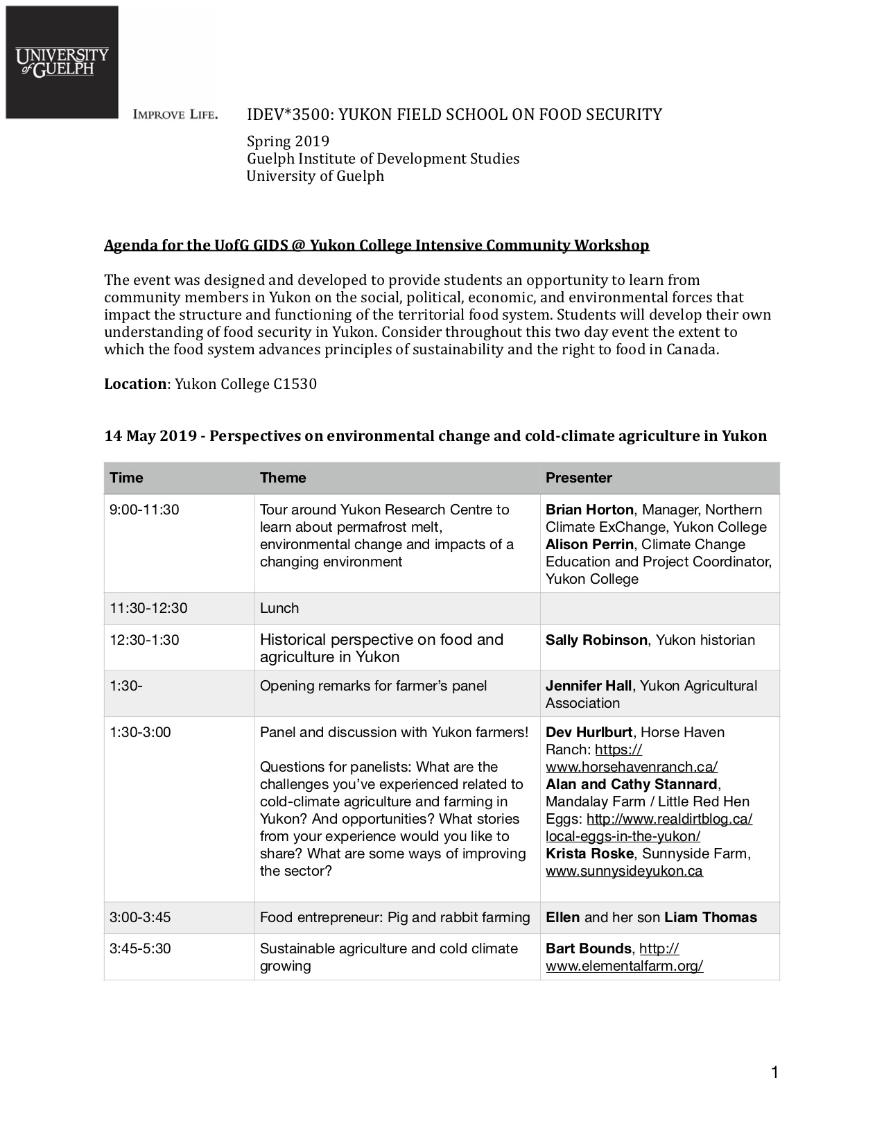 IDEV 3500 Yukon College intensive session 1